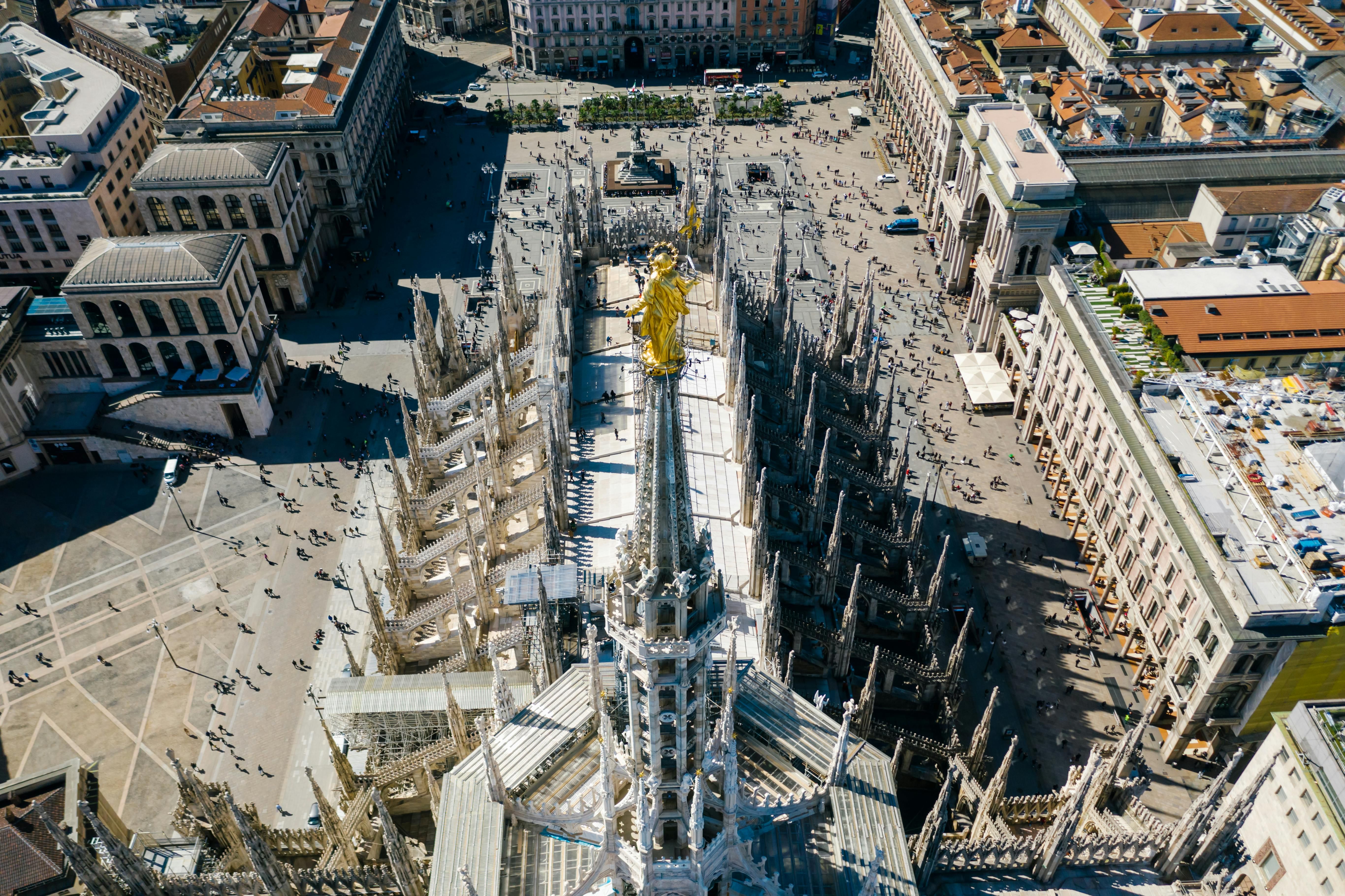as you ascend by stairs to the panoramic rooftop terraces. Marvel at sweeping views of Milan’s skyline, walk among towering spires, and learn the rich history of this Gothic masterpiece with insights from your expert guide. Ideal for travelers looking for an unforgettable perspective on Milan, this tour offers exclusive access to one of Italy’s most iconic landmarks. Book today to experience Milan from a new height!